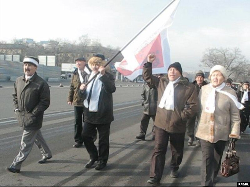 Оппозиция белсенділері Желтоқсан көтерілісін еске алу митингісіне келе жатыр. Алматы, 17 желтоқсан 2008 жыл.