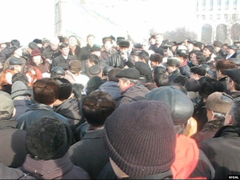 Желтоқсан көтерілісін еске алу митингісіне жүздеген адам жиналды. Алматы, 17 желтоқсан 2008 жыл.