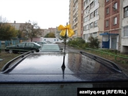 Көлікке тағылған сары лентаның бірі. Петропавл,