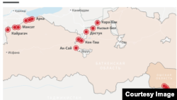 16-17 қыркүйекте тәжік және қырғыз шекарашылары арасында қақтығыс болған Баткен және Ош облысындағы ауылдар.