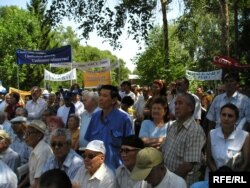 "Әділ сөз" қорының басшысы Тамара Қалеева сөз бостандығын қорғау минтингісінде. Алматы, 24 маусым 2009 ж.