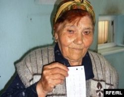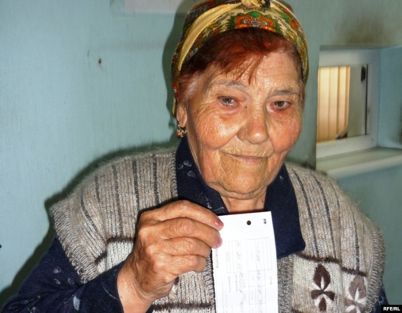 Коммуналдық қызметті төлеген зейнеткер Фаина Шырбаева тұрмыстық газ бағасының қымбаттағанын айтады. Шымкент, 15 мамыр 2009 ж.