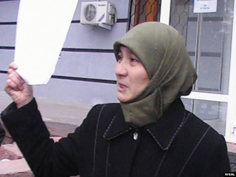 Айман Кәрімбаева Азаттық радиосының тілшісіне Мұғалжар аудандық сотының шешімін көрсетіп тұр. 22қараша, 2009 жыл.