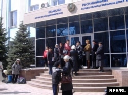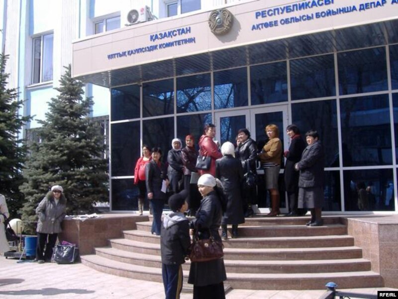 Нүкісте қамауда отырған қазақстандықтардың туыстары жәрдем сұрап ұлттық қауіпсіздік комитетіне келді. Ақтөбе, 17 сәуір 2009 ж.