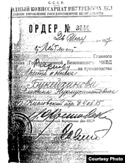 Әлихан Нұрмұхамедұлы Бөкейханды тұтқындау пәтерінде тінту жүргізу туралы берілген ордер. Ресей ФСБ-ның мұрағатындағы құжат. Мәскеу, ақпан, 1995 жыл.