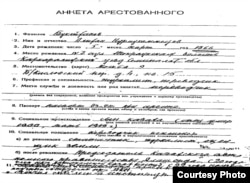 Келесі құжат – тұтқынның анкетасы. Ондағы жазбаларды жоғарыда айтылған өтініштегімен («сұраудағымен») салыстырсақ, онда бұл