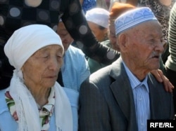 Алтынбек Сәрсенбайұлының әкесі мен анасы марқұмның бейітінің басына құлпытас орнатылған кезде. Алматы, 12 қыркүйек 2006 жыл.