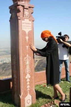 Алтынбек Сарсенбайұлының жары Салтанат Атушева марқұм күйеуінің бейітінің басына құлпытас орнатылған күні. 12 қыркүйек 2006 жыл.