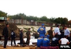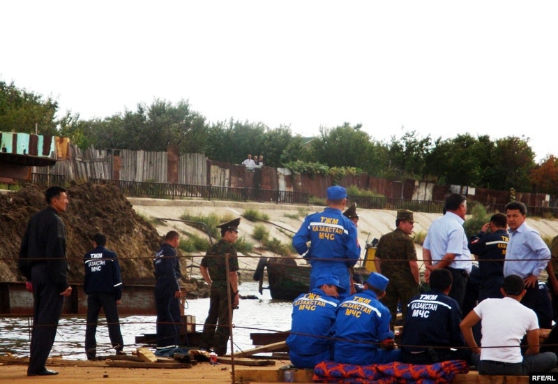Құтқарушылар тобы апат болған жерде. Атырау, 12 қыркүйек 2009 жыл.