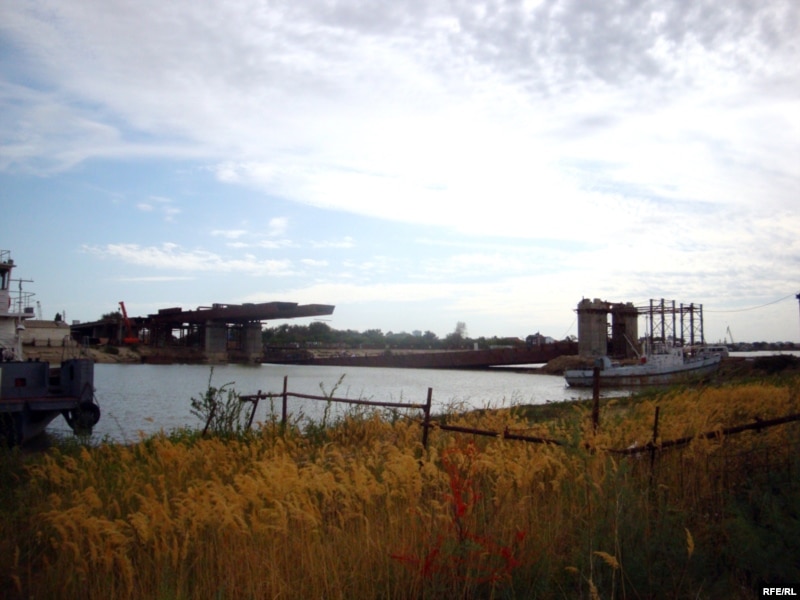 Құлаған көпірдің жалпы көрінісі. Атырау, 12 қыркүйек, 2009 жыл.