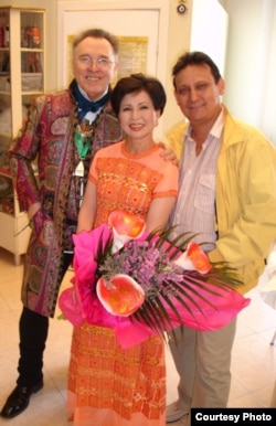 Берік Ысмайлов қазақ әншісі Роза Рымбаевамен және ресейлік танымал сәнді киім шебері Вячеслав Зайцевпен (сол жақта) бірге. Жеке мұрағаттағы сурет.