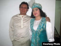 Қазақстанның халық әртісі, әнші Мақпал Жүнісова Берік Ысмайловтың қолынан шыққан сәнді көйлекпен тұр. Жеке мұрағаттағы сурет.