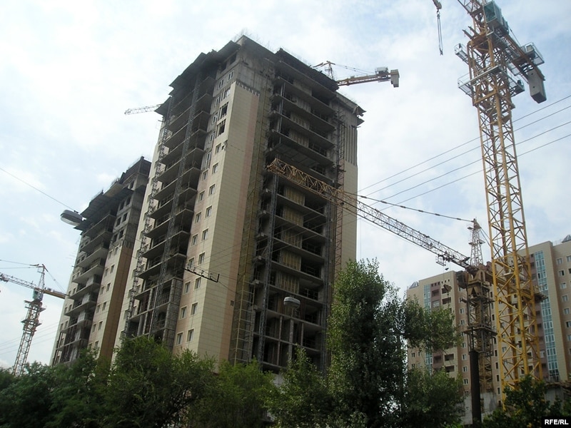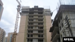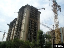 "Сайран" мега ауданындағы құрылысы әлі бітпеген үйлер. Алматы, 4 тамыз 2008 ж.