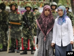 Ұйғырлардың бас көтеруін күшпен басқан соң, әскерилердің бақылауындағы Үрімжінің ұйғырлар қоныстанған ауданындағы базарда. 14 шілде 2009 жыл.
