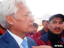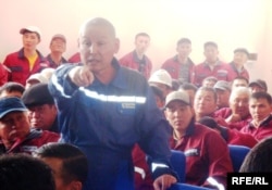 «Ембімұнайгаз» өндірістік филиалы кәсіподағының төрағасы Марат Нысанбаев (сол жақта). Прорва кеніші, Атырау облысы, 18 сәуір 2010 жыл.