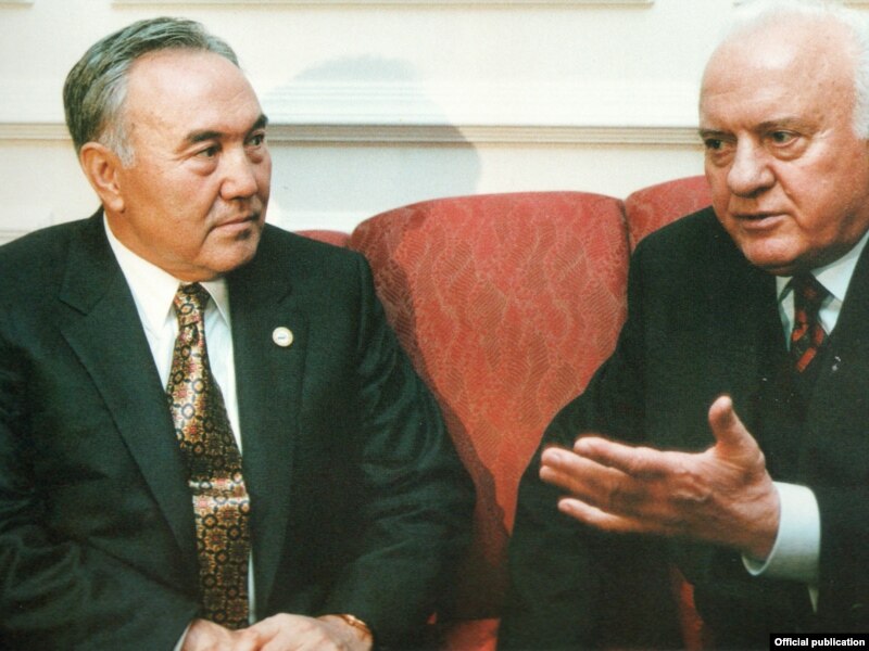 Қазақстан президенті Нұрсұлтан Назарбаев (сол жақта) пен Грузия президенті Эдуард Шеварднадзе. 1995 ж.