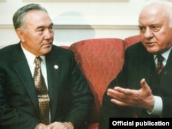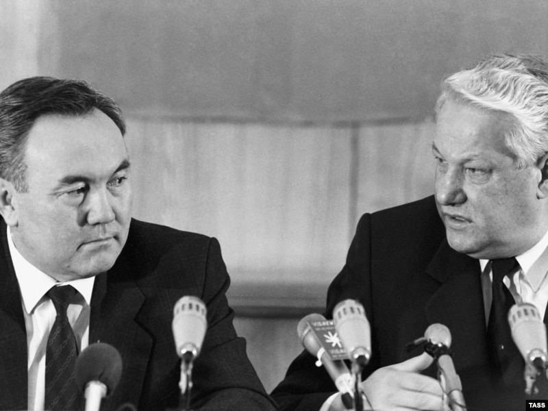 Қазақстан президенті Нұрсұлтан Назарбаев (сол жақта) және Ресей президенті Борис Ельцин. Мәскеу, 1990 ж.