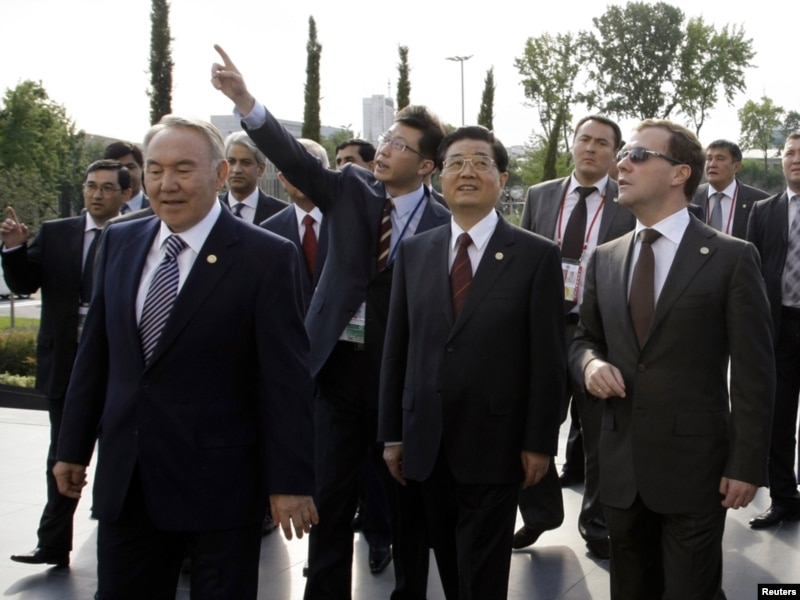 Н.Назарбаев, Ху Цзиньтао және Д.Медведев. Ташкент. 10 маусым 2010 жыл.