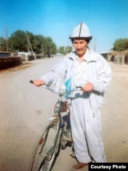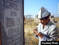Темірхан Момбекұлы ұзақ сапар кезінде әкесінің басына келіп, құран бағыштап тұр. Жеке мұрағаттағы сурет.
