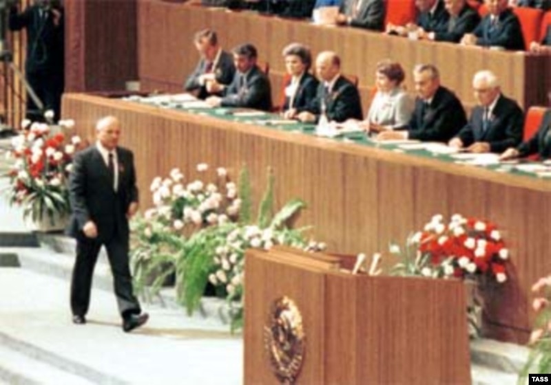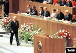 Михаил Горбачев Совет Одағы Компартиясының 27-сессиясында мінбеге келе жатыр. Мәскеу, 1 наурыз 1986 жыл.
