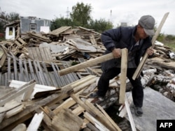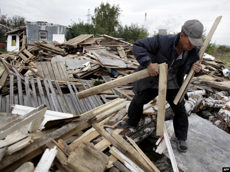 Ағаш жинап жатқан тәжік мигранты. Мәскеу, 29 қыркүйек 2009 жыл