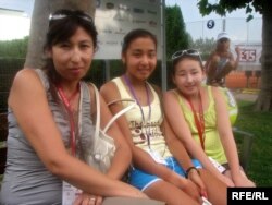 Қазақ теннисінің жас жұлдызының отбасы. Солдан оңға: Аида Әуелбекова, Зарина Дияс және оның сіңілісі Алиса Дияс. Прага, 17 шілде 2009 жыл.