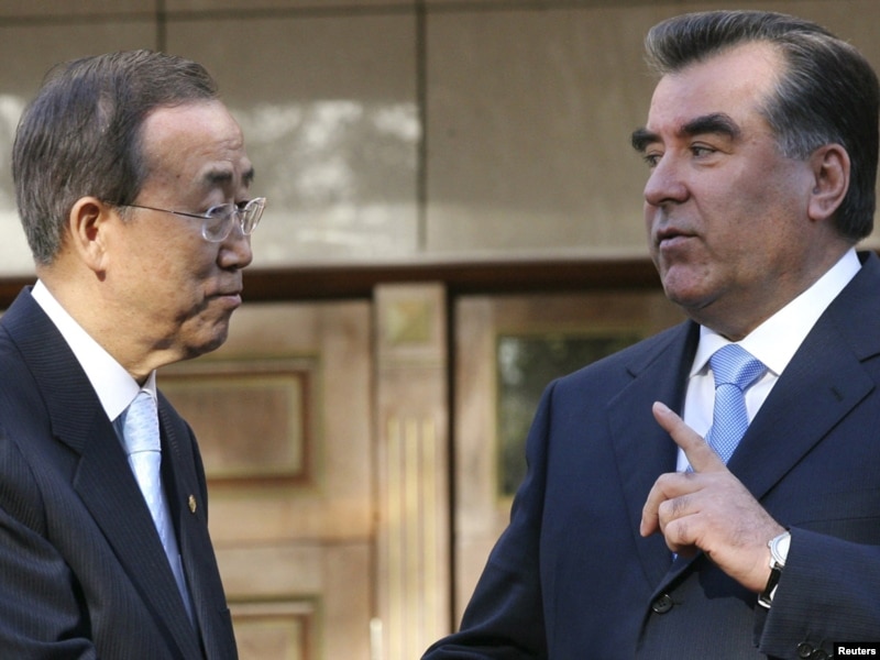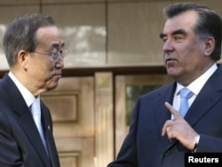 Тәжік президенті БҰҰ Бас хатшысымен бірге. Душанбе, 5 сәуір 2010 ж.