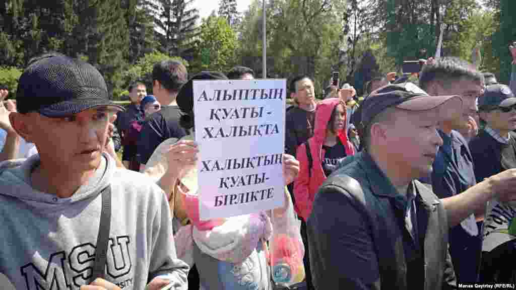 Мамырдың 1 -і күні ​Алматы мен Нұр-Сұлтанда мерекелік шара өтіп жатқан жерге жүзге жуық адам жиналып, билікке наразылықтарын білдірді. "Сайлауға - бойкот!", "Әділ сайлау талап етеміз!", "Масқара!" деп айғайлаған топқа прокуратура өкілдері ескерту жасады. ​Нұр-Сұлтан мен Алматыда арнайы жасақ өкілдері наразылыққа келген ондаған адамды ұстап әкетті. Нұр-Сұлтанда наразыларды ұстау кезінде арнайы жасақ өкілдерінің кейбір адамдарды резеңке таяқпен ұрғаны байқалды. Сәлден соң арнайы жасақ өкілдері наразыларды резеңке таяқпен ұруды дереу тоқтатты. Кейін наразы халықтың алдына прокуратура өкілдері шығып, "бұл заңсыз митинг екенін, тарамаса, жауапқа тартылатынын" ескертті. Жиналғандар полициядан ұсталғандарды босатуды талап етті. Халық алдына келген полиция өкілі "бір сағат ойларыңызды айтуға рұқсат бердік. Енді тараңыздар. Ал ұстаған адамдарды босатамыз" деді. Сәлден соң полиция ұсталғандарды босатты. Бірақ кейінірек оларды қайта ұстады. Азаттық оқиға орнынан түсірілген суреттер топтамасын ұсынады.