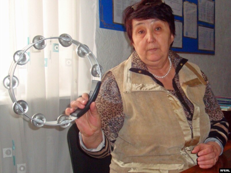 №24 балабақшаның директоры Татьяна Далоева көрсеткен осы сылдырмақтың дыбысымен бүлдіршіндер жаттығу жасайды. Атырау, 20 сәуір 2009 ж.