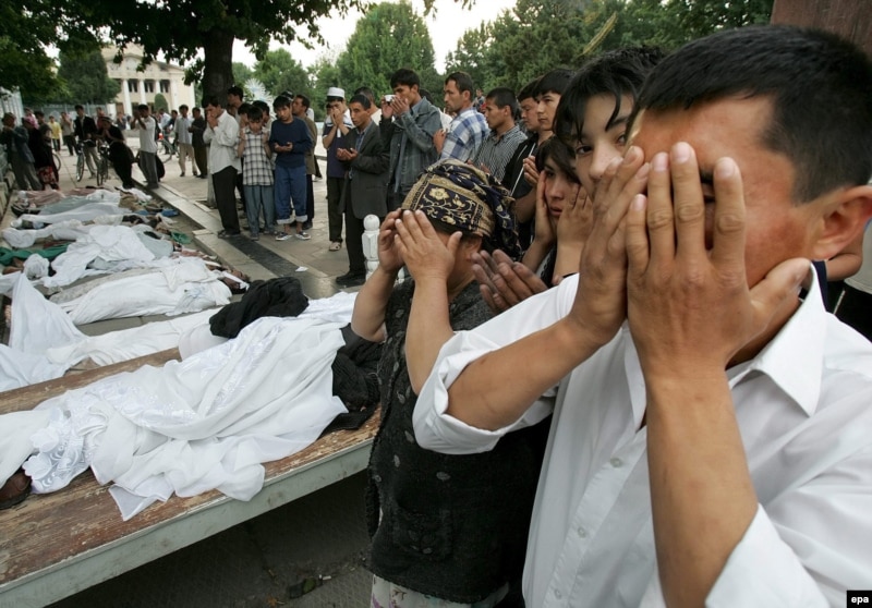 2005 жылы мамырдың 13-інде Әндіжанның орталық алаңына отыз мыңға тарта адам жиналып, бейбіт митинг өткізбек болды. Бірақ Өзбекстанның қарулы күштері наразылық митингісіне жиналған тұрғындарға оқ жаудырып, күшпен таратты.