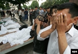 Үкіметтік күштер басып -жаншыған Әндіжан қырғынында қаза тапқандарға құран бағыштау. Әндіжан, 14 мамыр, 2010 жыл.
