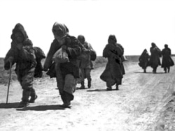 1930-жылдары аштықтан босып бара жатқан қазақтар.