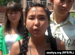 Абай атындағы Қазақ ұлттық педагогикалық университетінің студенттері наразылық танытып тұр. Алматы, 15 шілде 2011 жыл.