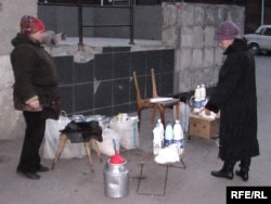 Қала көшесінде саудагер сүт өнімдерін сатып тұр. Қостанай, 20 қазан 2009 жыл.