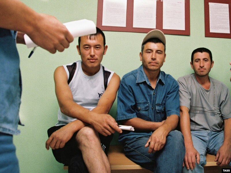 Ресейдің федеральдық миграция қызметі кеңсесіне келген Орталық Азия мигранттары. 20 шілде 2010 жыл. (Көрнекі сурет)