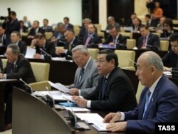 Парламент депутаттары "Ұлт көшбасшысына" қатысты заң жобаларын талқылау барысында. Астана, 13 мамыр, 2010 жыл.