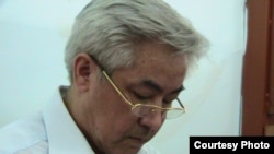 Жаңаөзеннің бұрынғы әкімі Орақ Сарбөпеев (сол жақта) сот процессінде. Ақтау, 25 мамыр 2012. Суреттің авторы Дина Байділдаева.