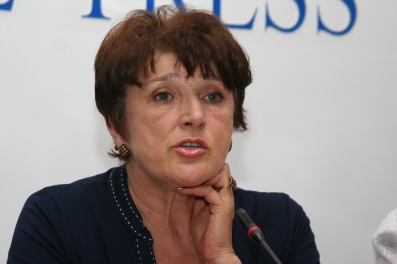 Бұрынғы парламент депутаты Татьяна Квятковская тұтқындалған топ-бизнесмен Мұхтар Жәкішевке айып тағып отыр. Алматы, 12 маусым 2009 жыл.