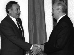 CCCР президенті Михаил Горбачев пен Қазақ ССР президенті Нұрсұлтан Назарбаев. Мәскеу, 25 қыркүйек 1990 жыл. (Көрнекі сурет)