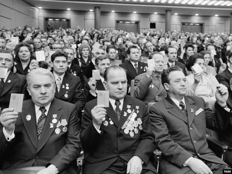 КПСС съезіндегі дауыс беру сәті. (Көрнекі сурет)