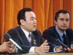 Қазақстан коммунистік партиясының бірінші хатшысы Нұрсұлтан Назарбаев (сол жақта) СССР делегациясы құрамында баспасөз мәслихатында отыр. Мәскеу, 1981 жыл. (Көрнекі сурет)