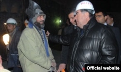 Тәжікстан президенті Эмомали Рахмон "Рогун" электр станциясындағы сапарында.