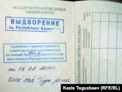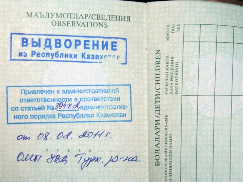 Өзбек босқынының паспортындағы Қазақстаннан шығару туралы мөр. Алматы, 28 ақпан 2011 жыл.