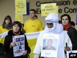 Францияда тұратын құқық қорғаушы Надежда Атаева Өзбекстан президенті Ислам Кәрімовтің Европа одағы астанасына келуіне қарсылық білдірген акцияға қатысып тұр. Брюссель, 24 қаңтар 2011 жыл.