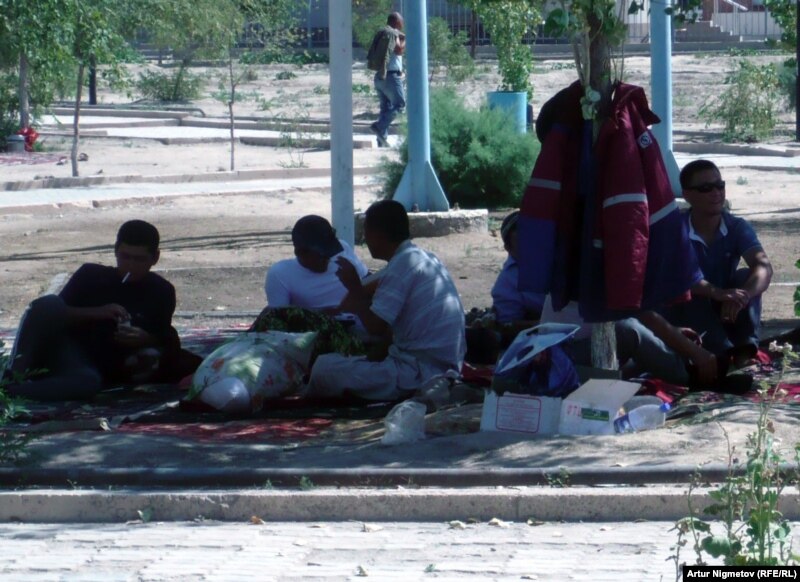 көлеңкесіне қарай ертіп жүрді. Онда кілем төсеп алған мұнайшылар жатыр екен. Жалпы, шөлейт Жаңаөзенде ағаш аз. Орталық алаңнан он түп ағашты әрең табасыз. Бәрінің түбінде мұнайшылар отыр. Шақырайған күннен осылай қорғанады. Бірақ алаңның ортасында шақырайған күннің астында ондаған мұнайшы отыр. Олардан «не себепті көлеңкеге бармайсыздар?» деп сұрағанымда мұны ерегесіп істеп отырғандарын, себебі алаңның орталығы бос қалмау керектігін айтты.