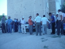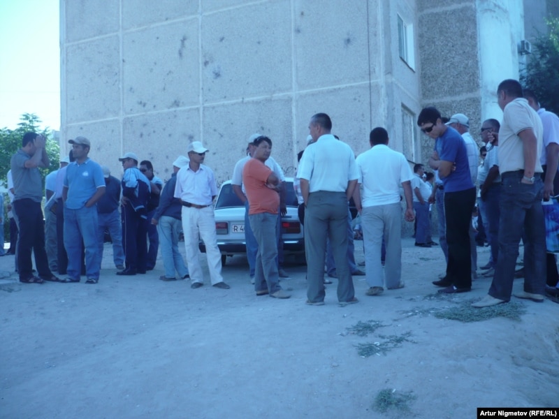 "Қаражанбасмұнай" компаниясы кеңсесі маңындағы ереуілші мұнайшылар. Ақтау, 3 қыркүйек 2011 жыл.