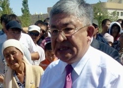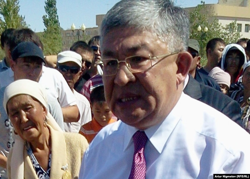 Маңғыстау облысының әкімі Қырымбек Көшербаев мұнайшылармен сөйлесіп тұр. Жаңаөзен, 1 қыркүйек 2011 жыл.