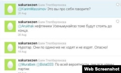 Мұнайшылар арасындағы белсенді туиттерші Роза Төлетаева премьер-министр Кәрім Мәсімовке, мәжіліс депутаты Бекболат Тілеуханға арнап