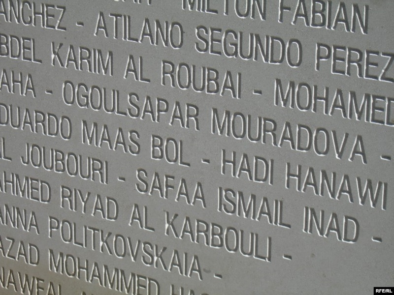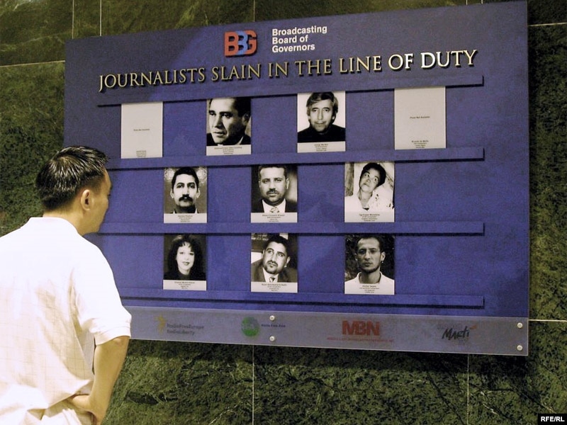 Қаза тапқан журналистердің суреті ілінген еске алу тақтасы. Вашингтон, 16 шілде 2008 жыл.