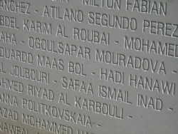 Қызмет барасында қаза тапқан журналистерге арналып Байеде қойылған ескерткіш тақтадағы Оғулсапар Мурадованың аты-жөні. Франция, 2 мамыр 2007 жыл.